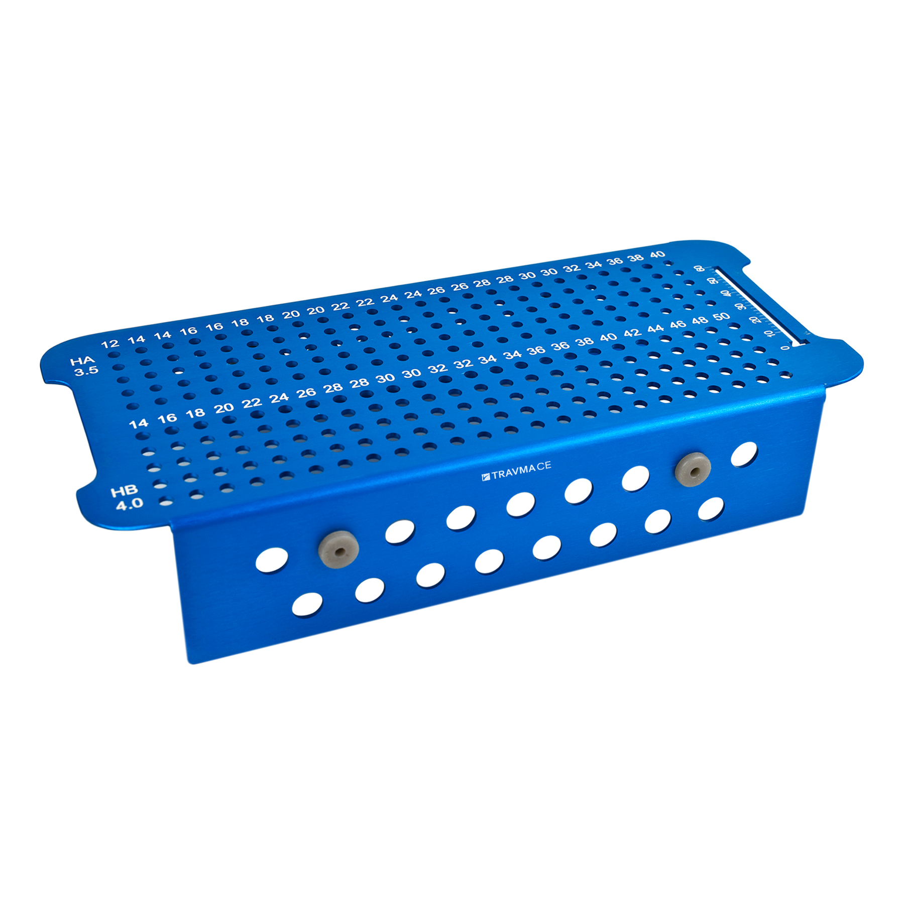 Caja tornillera 3.5/4.0mm. Contiene un rack para esterilizar, con capacidad para 120 tornillos corticales y 120 tornillos esponjosos. Medidas aproximadas de la caja: 28 X 13 X 6.5cm.
