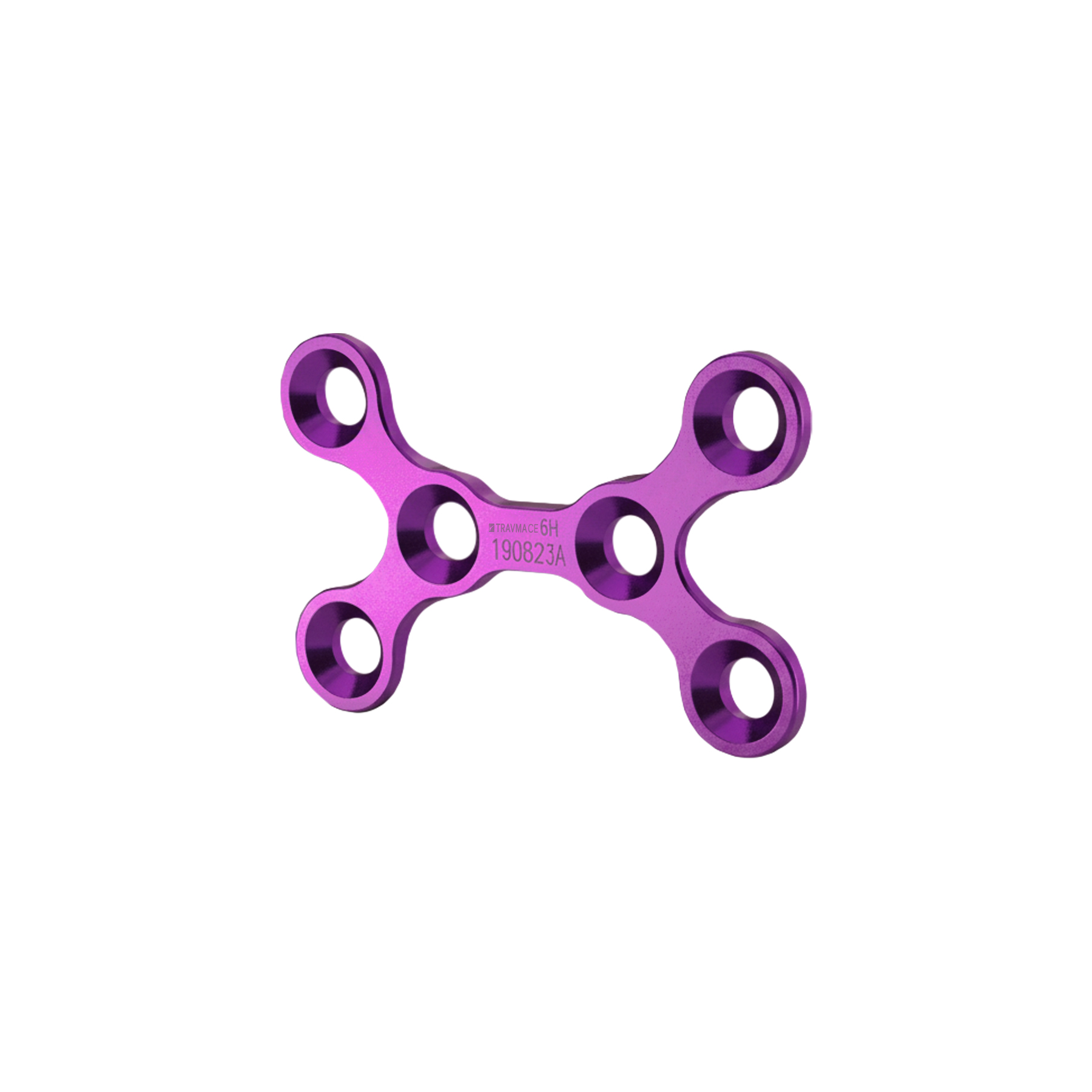 Micro placa doble «Y» para maxilofacial, diseñada para tornillo 1.5mm, cuenta con 3 orificios redondos de cada lado (6 orificios totales), perfil 0.6mm, fabricada en titanio.