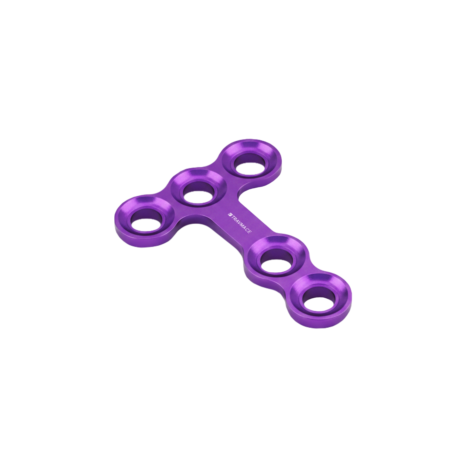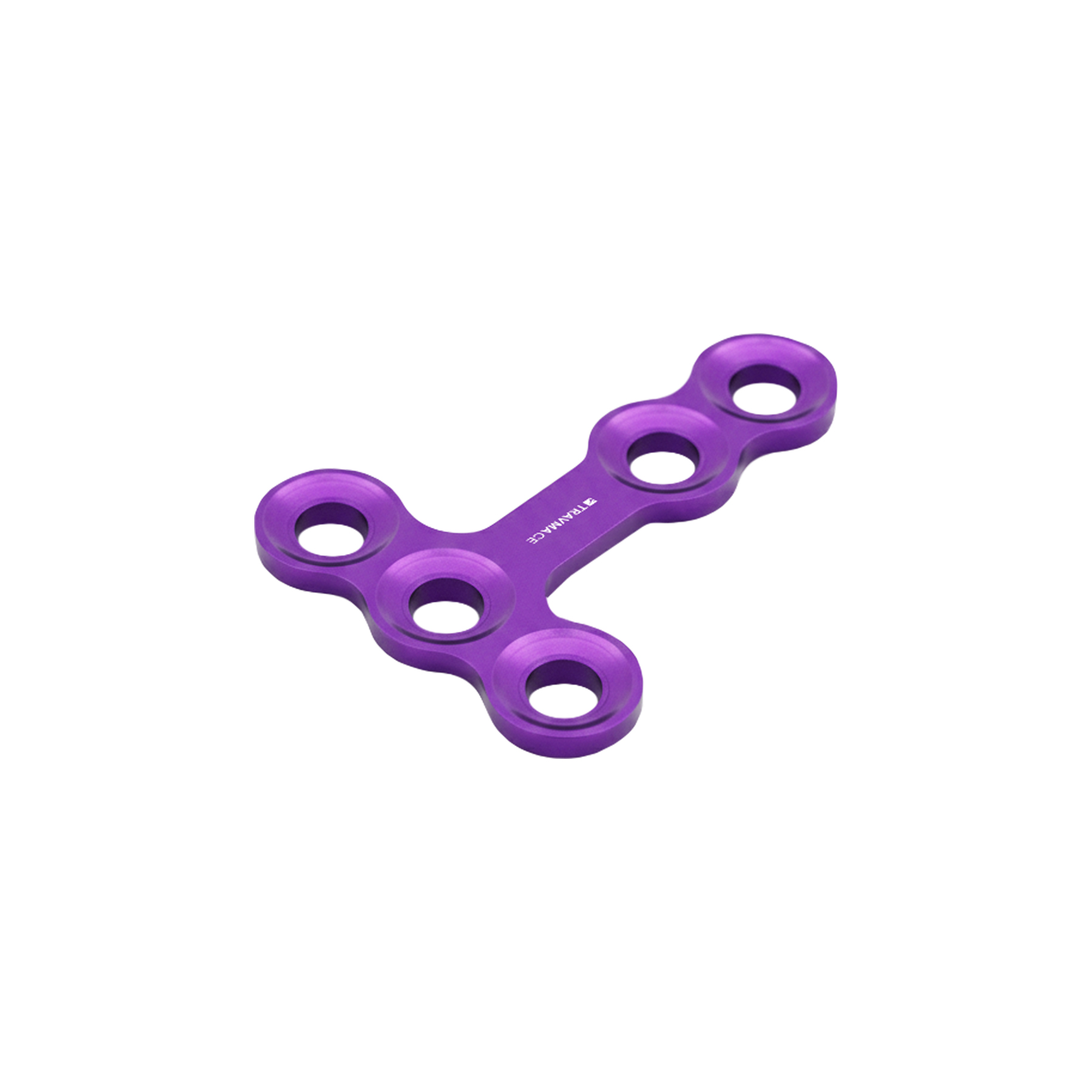 Placa bloqueada en «T» con perfil 0.6mm para maxilofacial, diseñada para perno de bloqueo 1.5mm, cuenta con 2 orificios de bloqueo en el vástago y 3 en la cabeza, dichos orificios cuentan la tecnología *BLOQUEX que permite que el perno se fije en la placa. Fabricada en titanio. Esta placa esta indicada para las fracturas craneomaxilofaciales y osteotomías de desplazamiento.