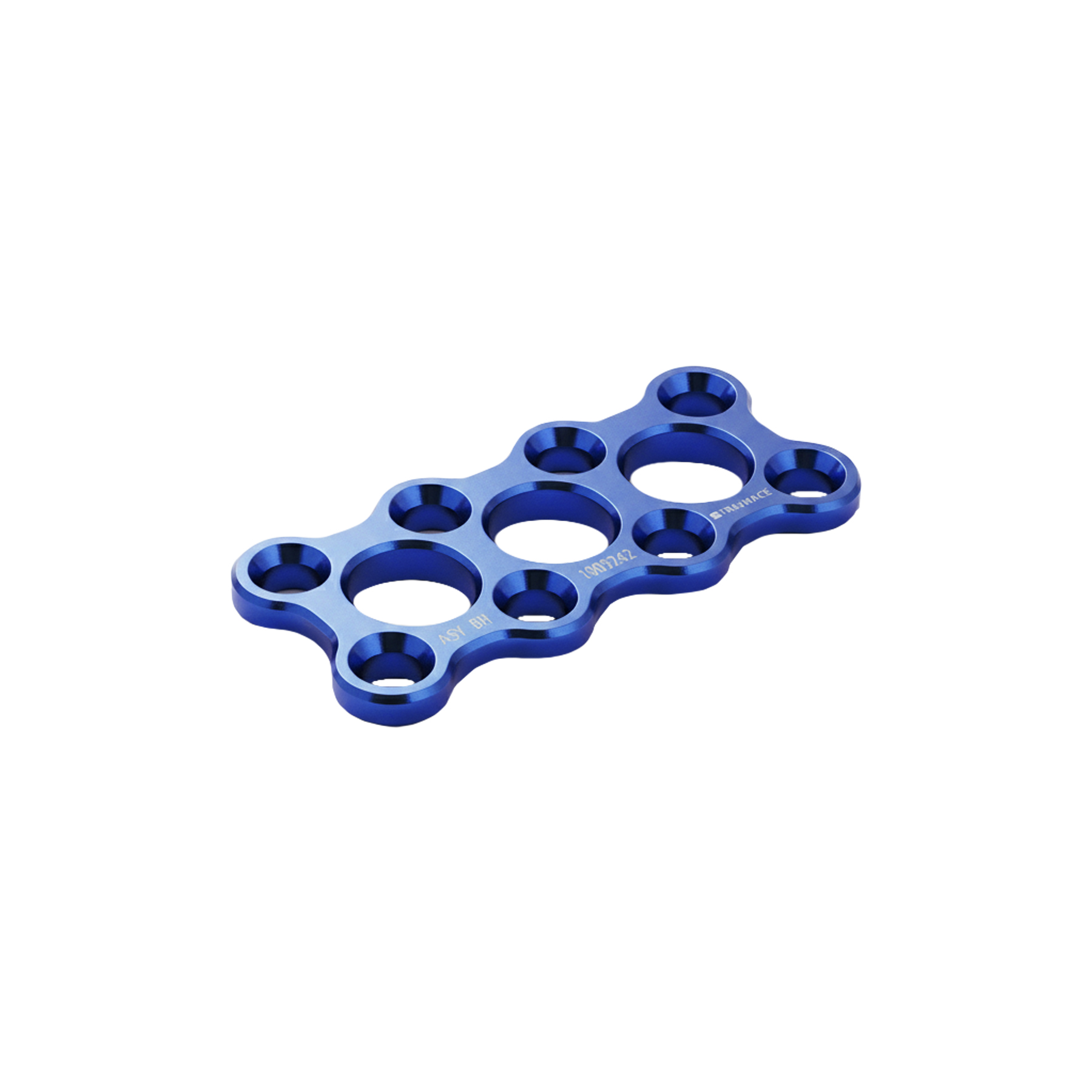 Mini placa rectangular, diseñada para tornillo 2.0mm, cuenta con orificios redondos según la longitud de la placa, perfil 1.0mm, fabricada en titanio.