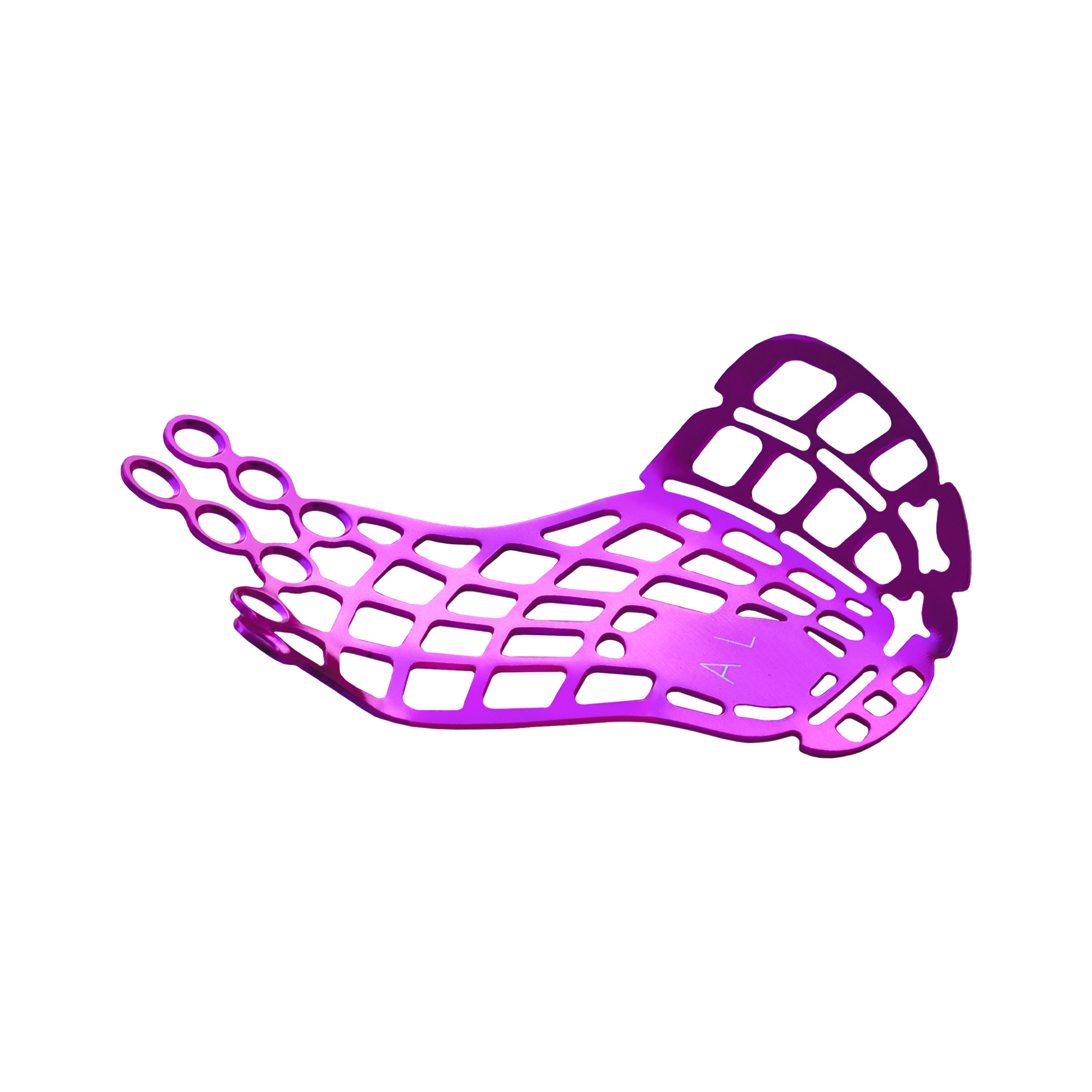 Placa orbital anatómica, diseñada para tornillo 1.5mm. Fabricada en titanio. Esta placa esta indicada para fracturas de suelo y pared orbital.