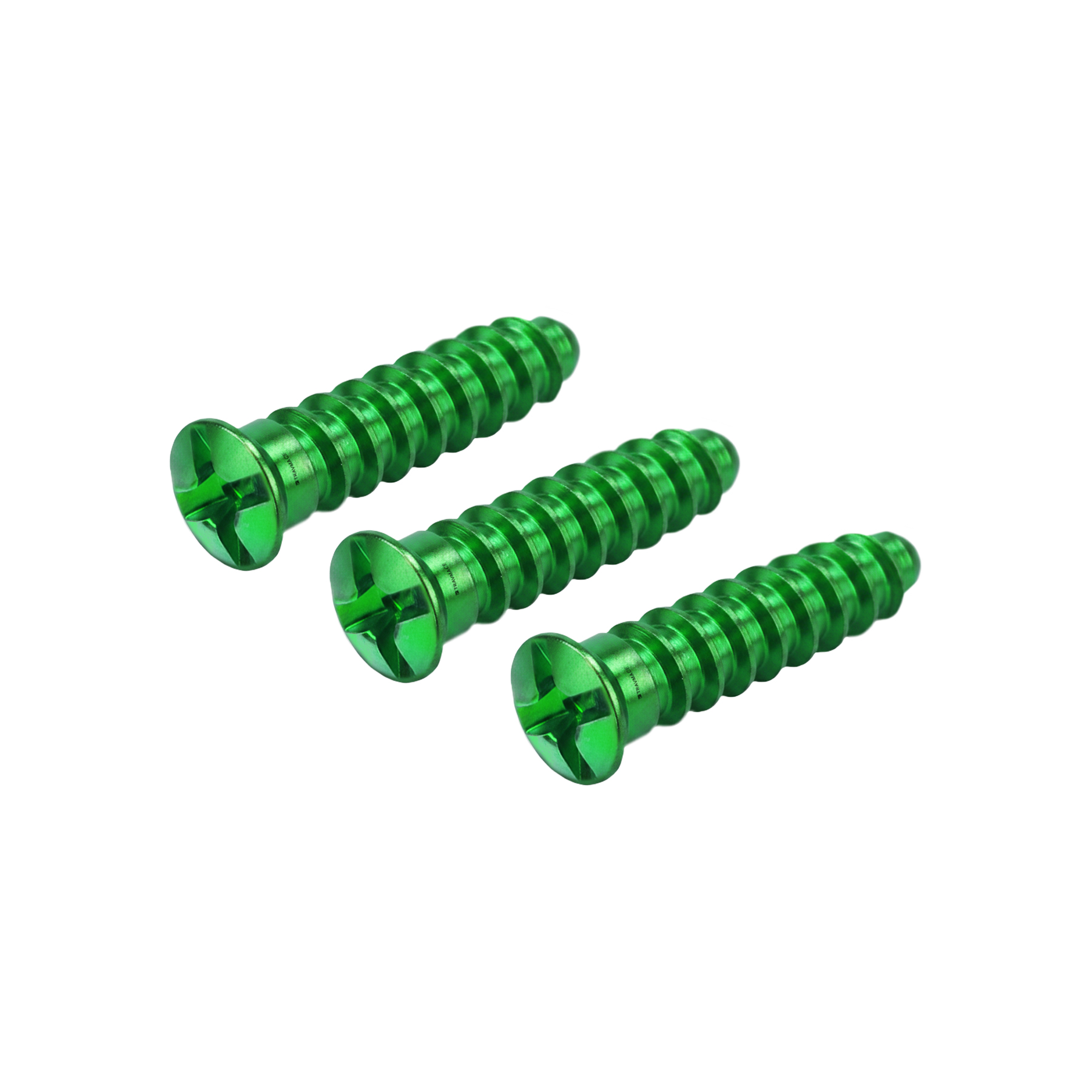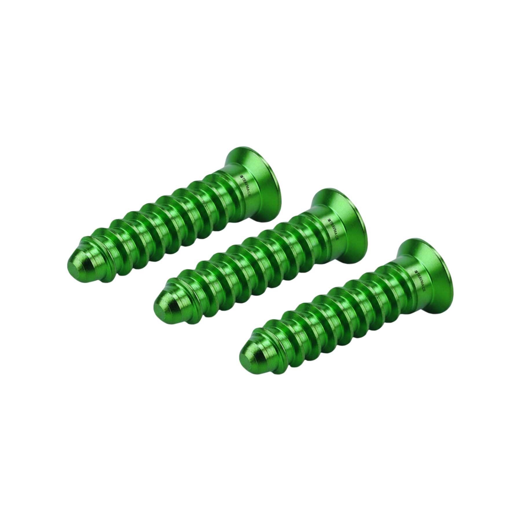 Tornillo de emergencia para craneomaxilofacial, diámetro 2.3mm, rosca continua y punta roma, la cabeza plana permite un mejor amoldamiento en la placa, cuenta con entrada en cruz, fabricado en titanio.