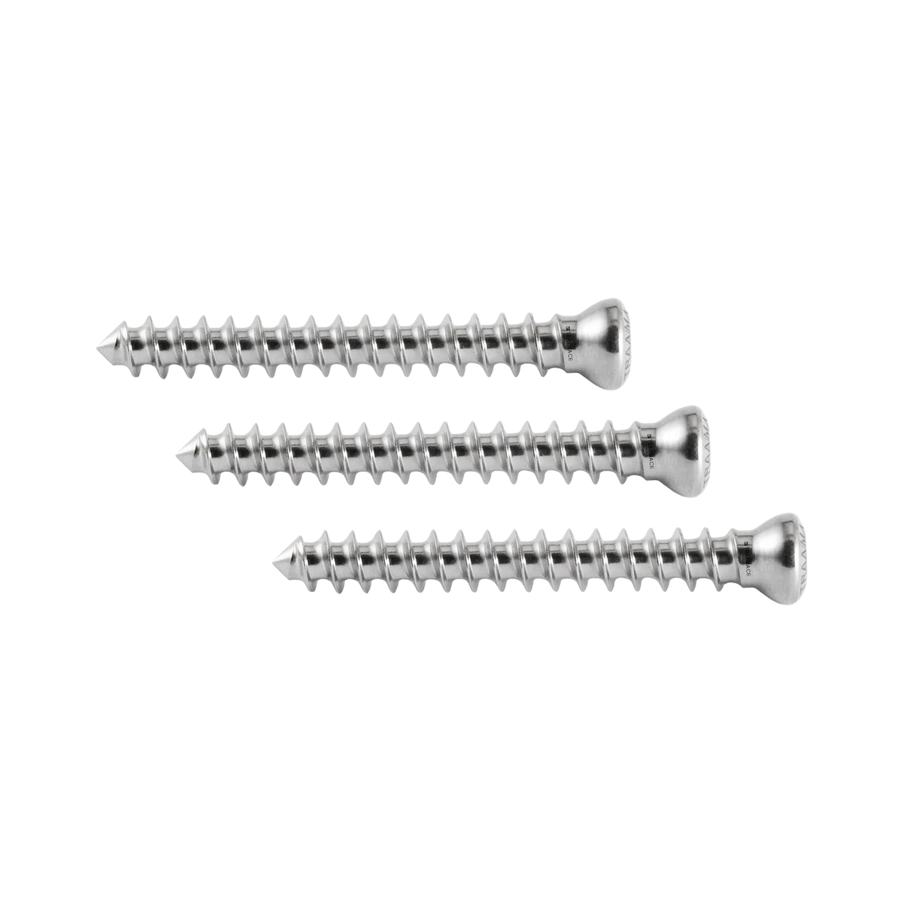 Tornillo para esponjosa en acero, diámetro 4.0, rosca completa. La cabeza plana permite un mejor amoldamiento en la placa.