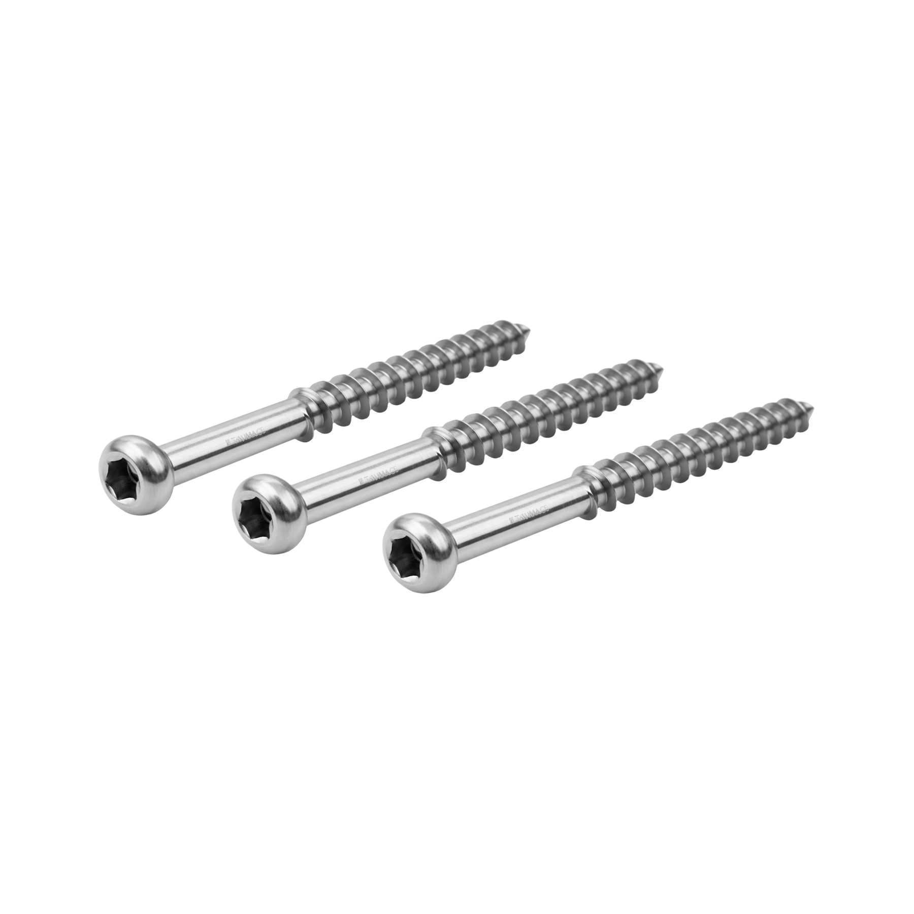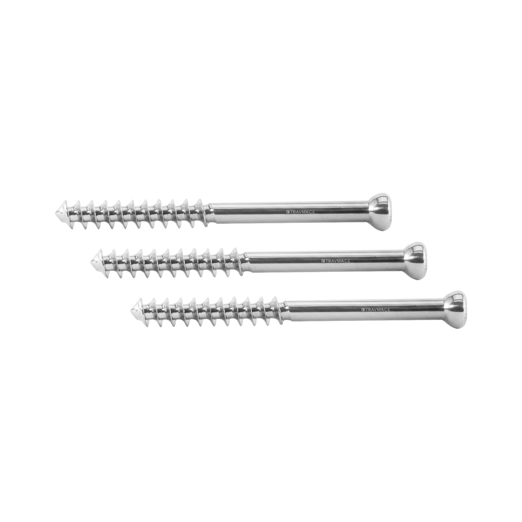 Tornillo para esponjosa de acero, diámetro 6.5mm, rosca parcial de 32mm en punta. La cabeza plana permite un mejor amoldamiento en la placa.